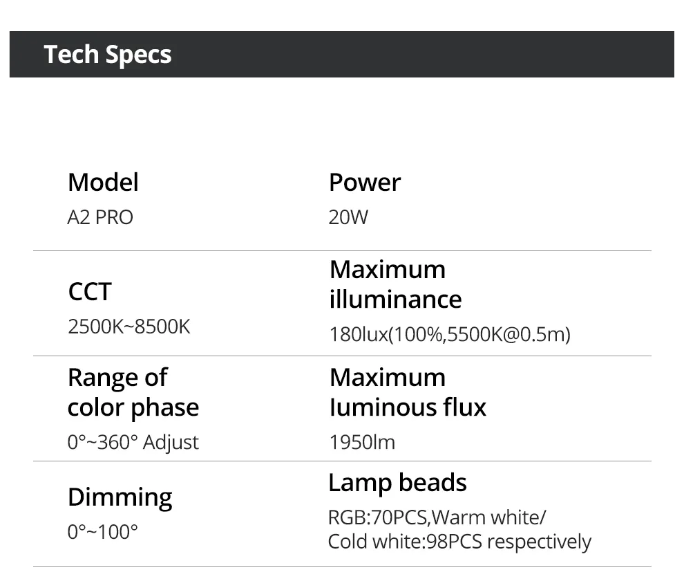 Ambitful A2 PRO - это обновленная и усиленная версия AMBITFUL A2, с более длинной трубкой, повышенной яркостью, расширеннымми функциями. Откройте для себя больше возможностей для съемки!